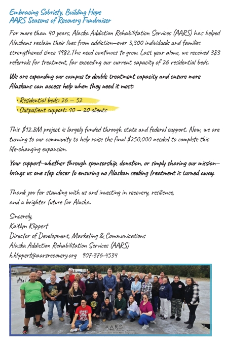 For 43 years, Alaska Addiction Rehabilitation Services (AARS) has offered hope, dignity, and healing for adults struggling with substance use disorder. But the need is outpacing capacity. AARS receives nearly 383 statewide referrals each year yet can only treat about 40 clients annually due to limited space.